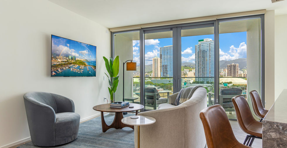 Experience the convenience and ease of contemporary coastal living in this turnkey 2-bedroom, 2-bathroom residence in Ko?ula! This unit has been carefully designed with an open floor plan integrating large windows to invite natural light and create a spacious, modern feel. The well-equipped kitchen features Miele appliances, while the two lanais (71 sq. ft. and 87 sq. ft.) allow partial ocean views and views of the mountains, Victoria Park, and the amenities deck/gardens. Designed to honor Hawai’i’s culture and integrate the indoors and outdoors, Ko?ula features direct access to Victoria Ward Park and proximity to exciting retail, restaurants, and entertainment. Resort-style amenities include a spa-like fitness center, lap pool and two spas, poolside event rooms, poolside cabanas, sunset lounge, dining bars, BBQ pavilions, a children’s play area, guest suites, and a dog park. Includes 1 compact parking stall, basic cable, and internet. Electricity is not included. Renter’s insurance is required.